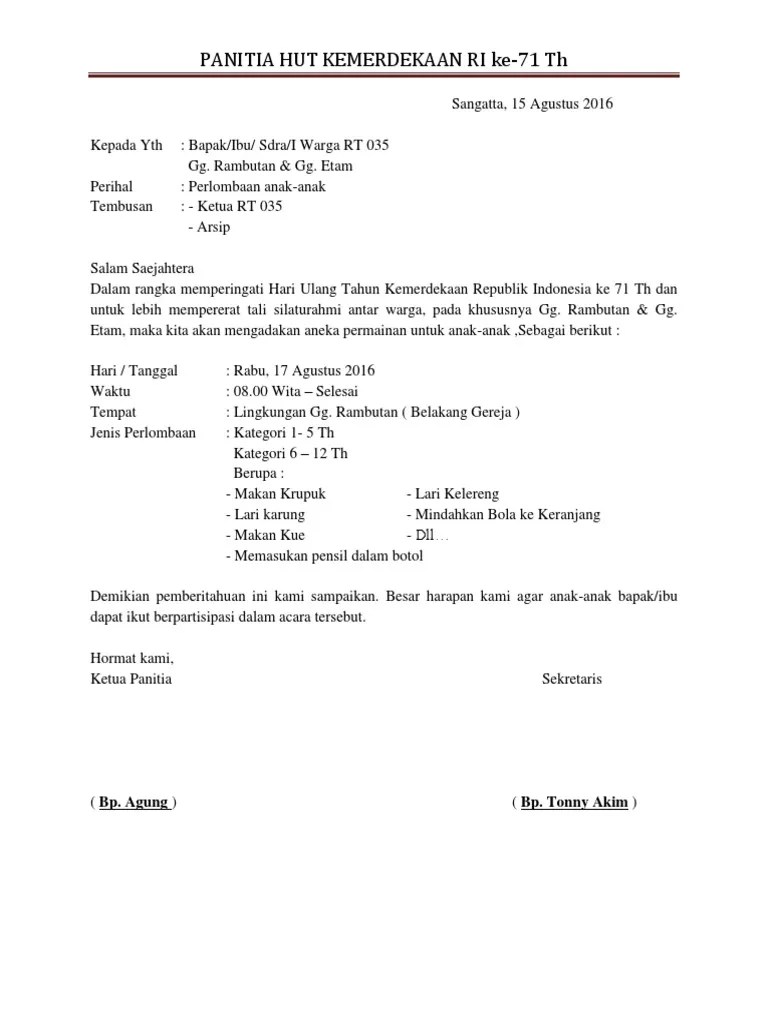 Toro budiman ketua panitia 2. Kunci jawaban buku tematik tema 4 kelas 5 sd. Savesave contoh surat undangan setengah resmi for later. Peringatan hut kemerdekaan indonesia 4. Surat undangan materi kelas v sd tema 7 gurune net.
